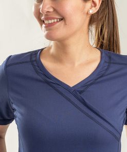 Top Mujer escote v en puntas, con bolsillos inferiores, canesu en espalda, aplicación de dry fit en los costados.